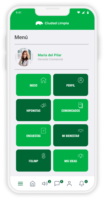 En este módulo encontrarás las últimas publicaciones del app relacionadas con Noticias, Eventos, Bienestar, Galería y Clasificados, adicionalmente contamos con las interacciones generadas por todos los usuarios y están relacionadas con me gusta, comentarios, compartir y/o guardar contenidos.